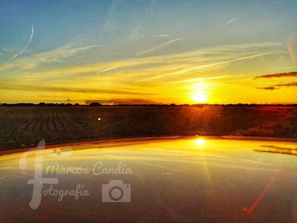 O sol está reflexado sobre o teito dun coche, dándolle así un carácter especial a fotografía.
