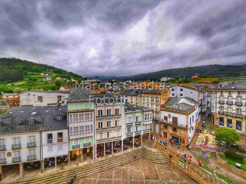 Vista «aerea» hoxe, da Praza da Catedral, e parte do casco histórico de Mondoñedo.
