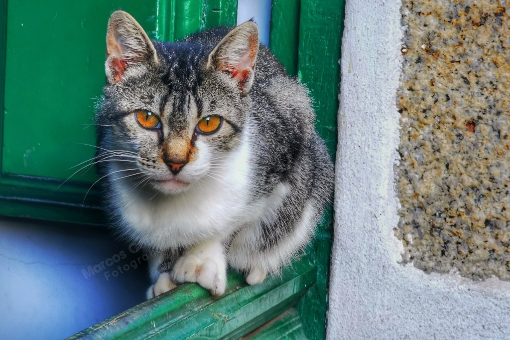 Volto coa categoría «fauna» para traer ata o blog este pequeno felino que garda con recelo a entrada da vivenda do seu amo, ademáis de vixiar a rúa San Roque na que se atopaba nesta soleada tarde.