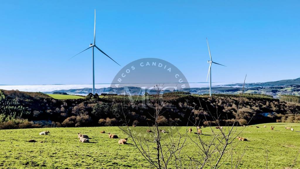 A fotografía foi captada dende a subida a Corda, no concello de Abadín. Ademáis do extenso val que se imaxina baixo a neboa, tamén podemos ver dous xigantes do vento, ademáis dun grupo de vacas que descantan tranquilamente sobre o verde do prado.