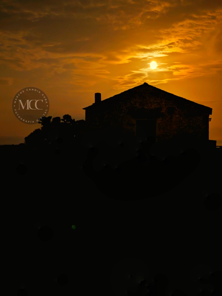 E así voltamos, cunha imaxe da lúa sobre a vila mariñeira, onde destaca tamén unha das súas vivendas, ademáis dunha fermosa cor do ceo.