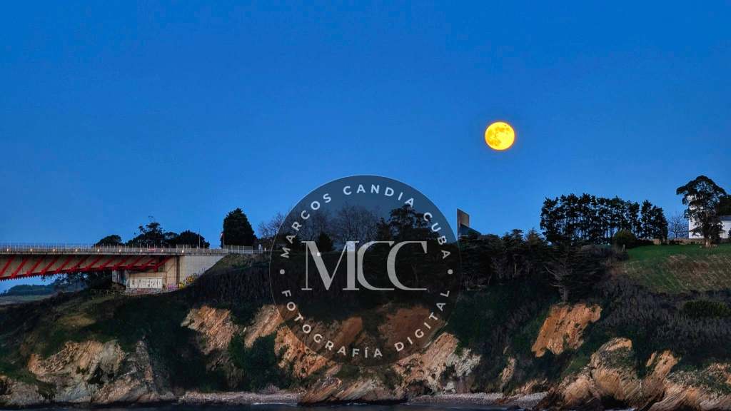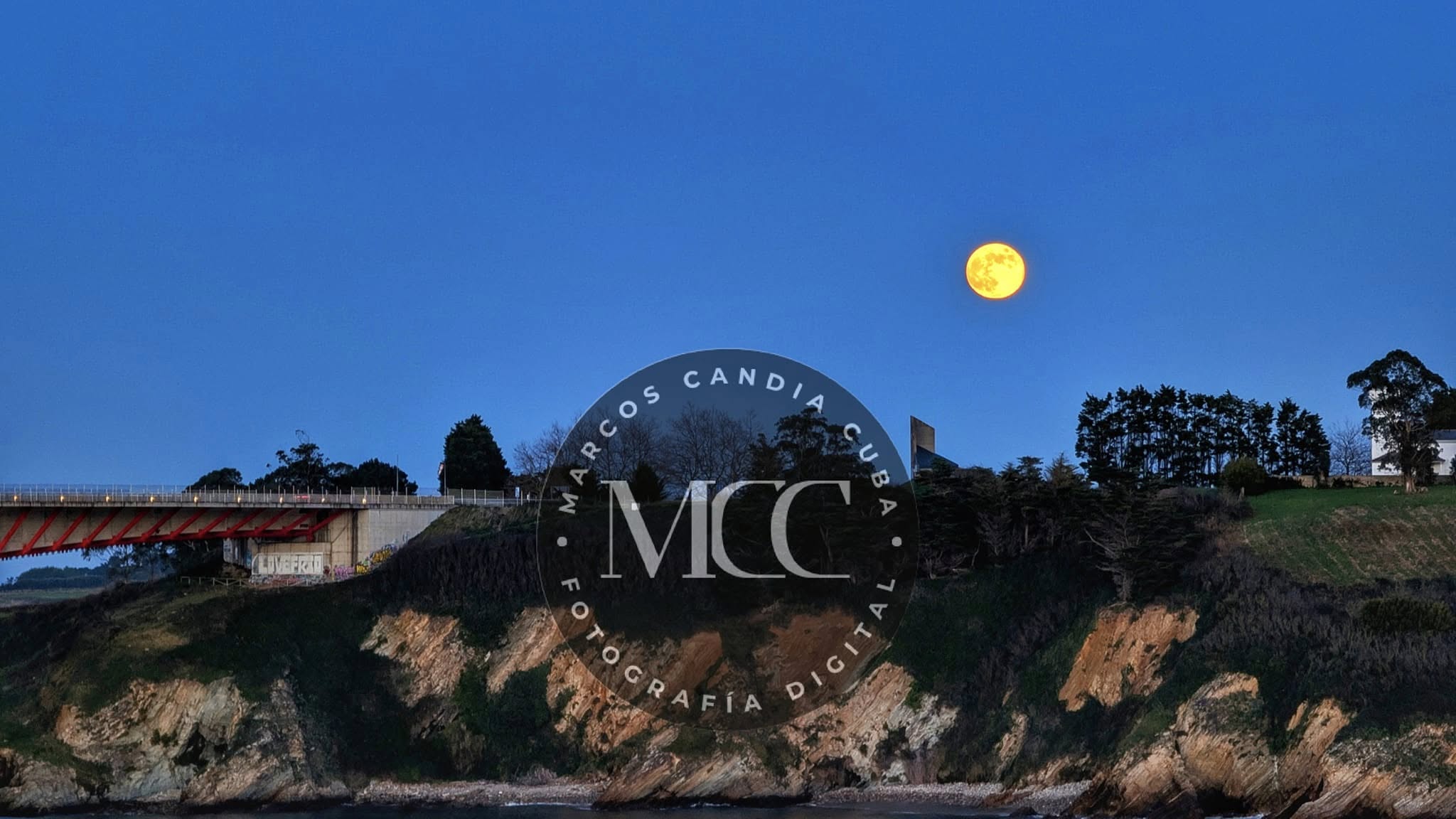 Lúa chea a que hoxe podemos ollar na imaxe. Captada dende a Capela da Trinidade, onde se pode ollar unha explendida lúa chea, a Ponte dos Santos, a Ría, e parte das primeiras terras de Castropol unha vez nos adentramos na veciña Asturias.