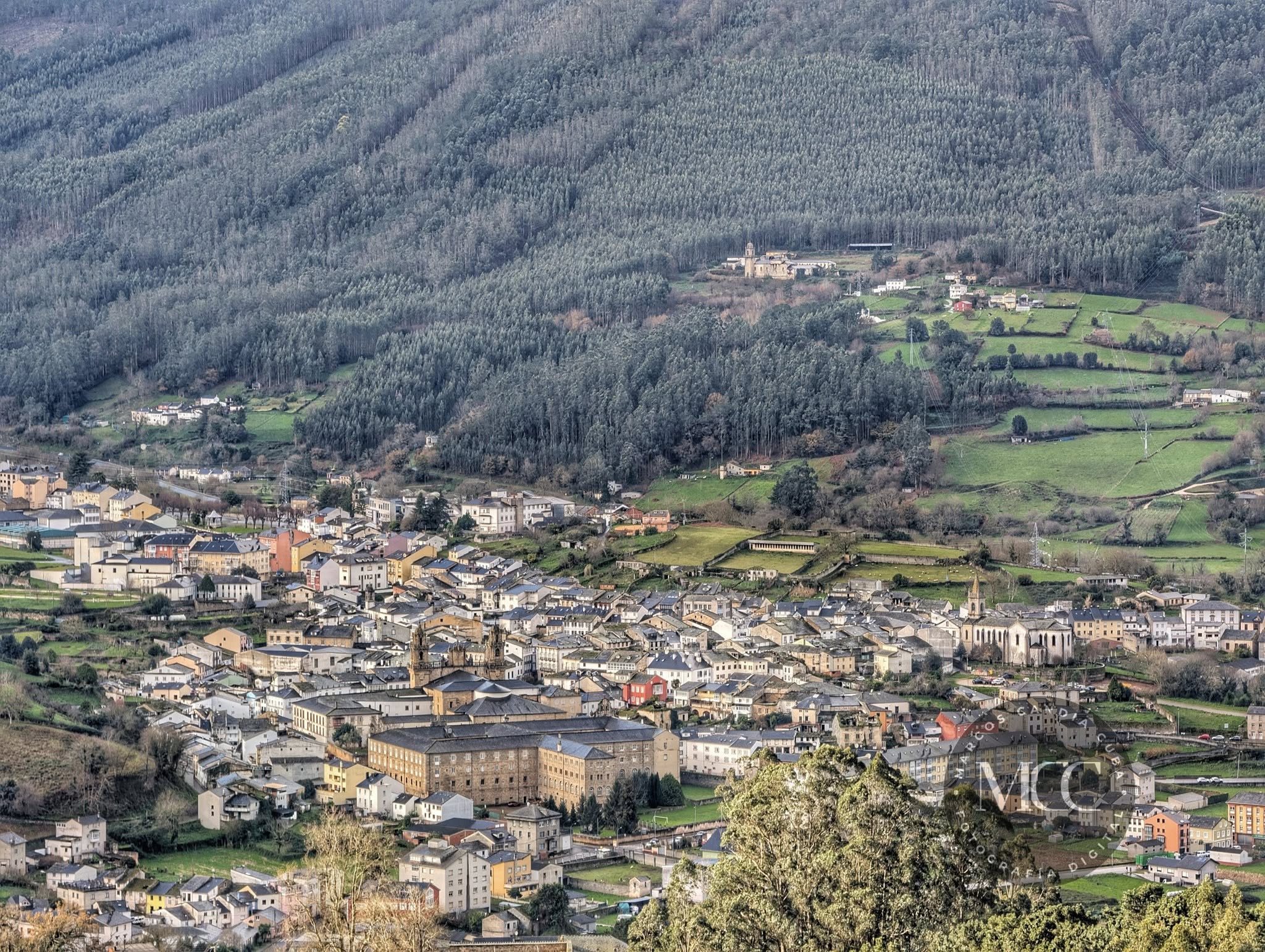 Na imaxe de hoxe, unha vista panorámica ao casco histórico de Mondoñedo, queremos reseñar os edificios relixios que dun simple vistazo podemos ver, e que sobresaen de xeito impoñente na cidade. A Catedral, O Seminario, a Igrexa de Santiago, o Convento das Concepcionistas, o Mosteiro dos Picos, podese ver tamén a fachada do Hospital San Pablo e San Lázaro e incluso as torres do Santuario de Nosa Señora dos Remedios. Un amplo abano de edificios que marcan a historia da nosa cidade.