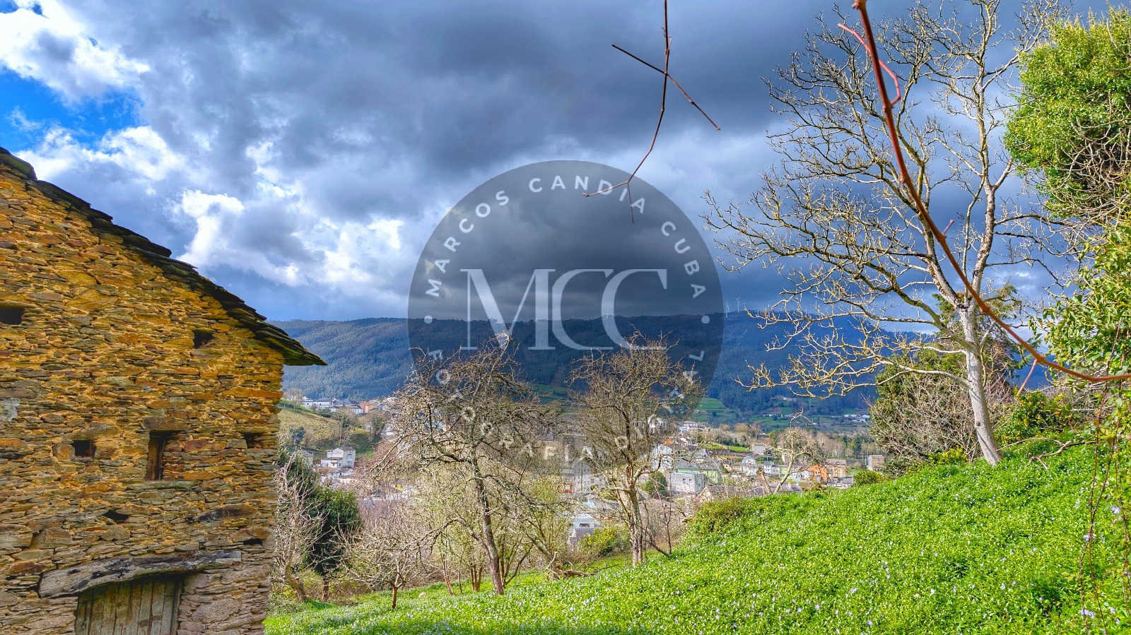 Imaxe hoxe captada dende o barrio de O Couto, onde a través das árbores podemos intuir o centro histórico de Mondoñedo, e ao fondo podemos ver a ladeira dos montes de Zoñán e en último termo a Toxiza nos montes de Tronceda.