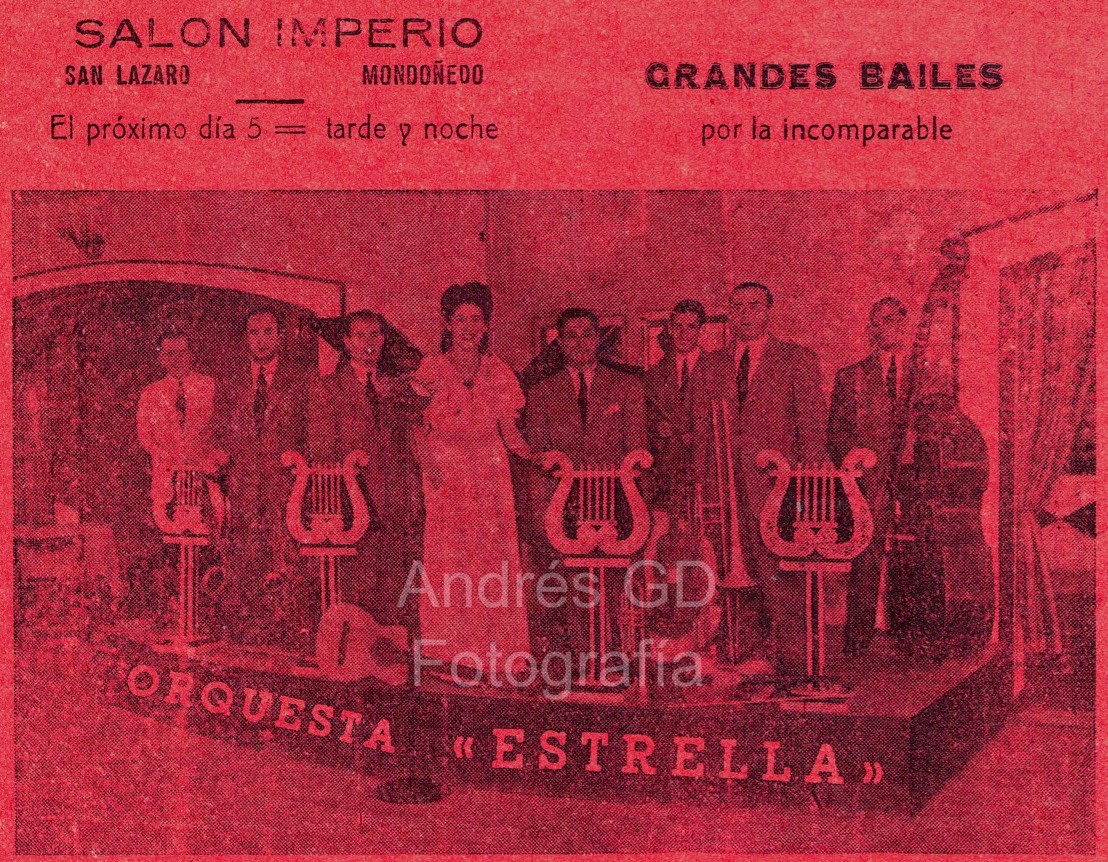 Coñecida como Salón Imperio, neste lugar a orquestra coruñesa «La Estrella», amenizou uns grandes bailes. Entre os seus compoñentes, destacaba a súa fermosa e simpática vocalista Alicia de La Vega, filla de Ricardo Veiga González «O Bodego» e de María del Carmen Paz Otero «A Lidona» de Mondoñedo. Entre o seu amplo repertorio figuraban temás como: «Río de Janeiro» (Samba); «Viena es así» (Vals); «Mi casita de papel» (Canción do Oeste).