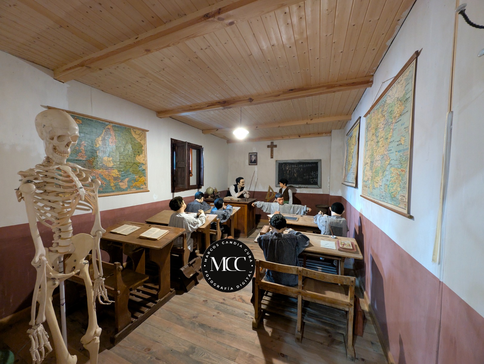 Un dos obxetivos do museo é tamén a recreación de varias excenas que representan as costumes de vida da sociedade, así como varios oficios. É precisamente unha destas escenas a protagonista da nosa imaxe de hoxe, a recreación dunha escola.