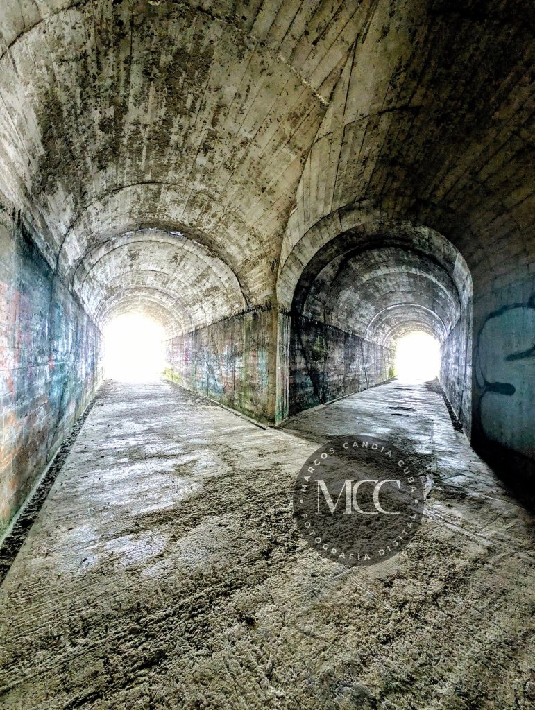 Cunha entrada e dúas saídas (as que se ven na imaxe), sobre os cantís do bravo mar atlántico. Estos túneles corresponden a unha instalación militar, agora abandonada, construida nos anos 20 do século XX. A súa misión era a defensa da costa galega duranta aquelas épocas convulsas. Nestes túneles subterráneos tentábase a localización de enemigos a través da utilización de grandes proxectores de luz sobre o mar. Preto deste punto, a 3 km dirección sureste atoparemos tamén unha serie de baterías de defensa.